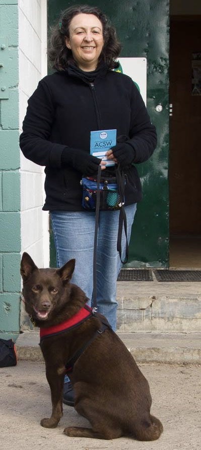 In 2003 Sandy and several others founded Southside Dog School because they wanted a club which only taught reward based training. No punishment, fear or intimidation. In 2004 she took up the dog sport of Agility taking her kelpie Clancy to Masters level and is still competing with her young kelpie Merlin. Sandy says “I have been teaching pet dog training for 17 years and still get a buzz when I help a new dog owner solve a problem they have with their dog”.
